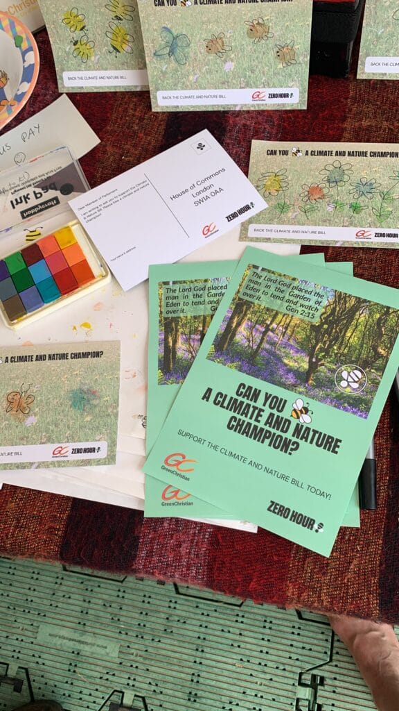 - Order the postcards and flyers from us – info@greenchristian.org.uk. Please give us the date you need them by, how many you want and your address. We will also give you our address for you to send the children’s postcards