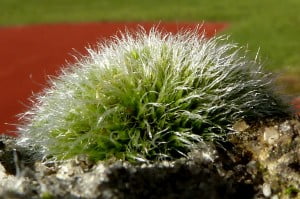 You may find some dark green grey cushions, 1cm to 4cm across and up to 3cm deep – silvery grey because all the leaves end in long hair points. these cushions look like a little mouse on the wall.