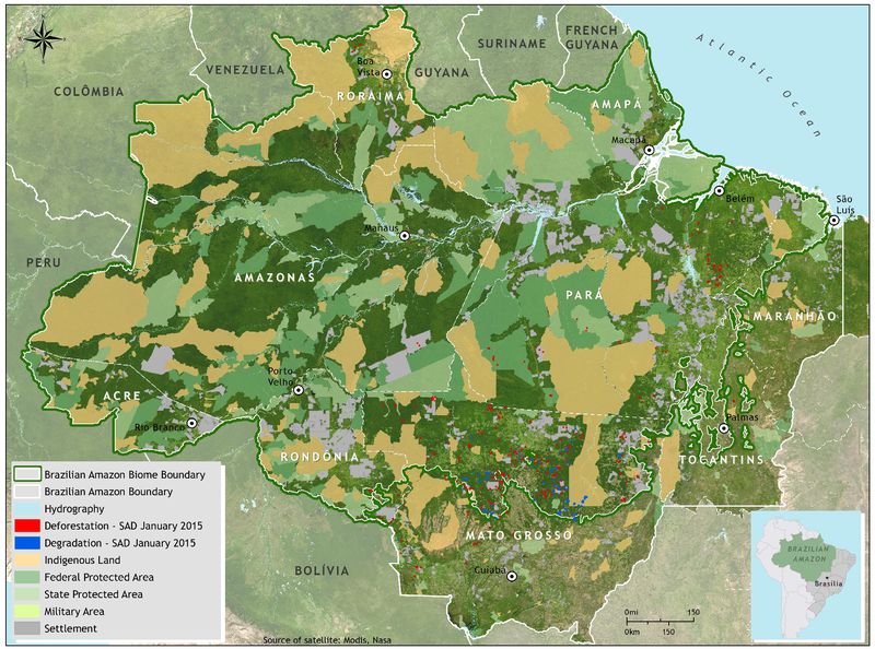 The good news is that the overall rate of deforestation has slowed down dramatically and in 2015 was about 75% below the average for 1996 to 2005. This is the reason that Brazil has been able to greatly reduce its net greenhouse gas emissions in accordance with pledges towards an 80% reduction by 2020. Deforestation has been reduced through good satellite surveillance, better control of the illegal actions of farmers and land speculators, and the establishment of more protected areas, but it is still a concern especially during the current political uncertainty in Brazil.