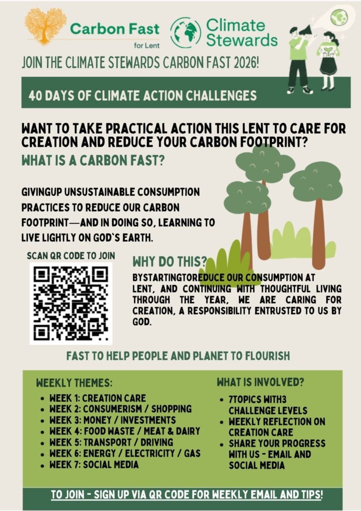 4. Carbon Fast: Climate Stewards have resources for a carbon fast for Lent. You can find out more and sign up here.