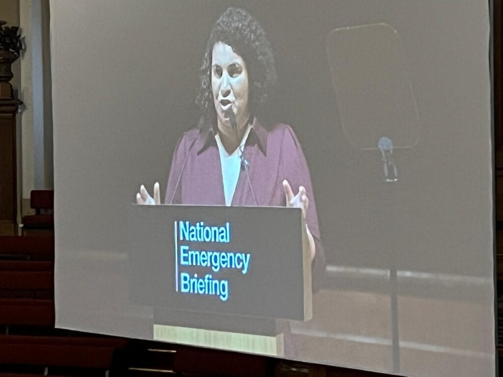 “James Baldwin famously said that ‘Nothing can be changed until it is faced’. 30 COPs have failed to even reduce the rate at which we are putting greenhouse gases into the atmosphere. At COP30 fossil fuels were taken out of the final text – our response couldn’t be more inadequate. This event is about resetting the national conversation … creating a social tipping point. You have already shown courage and leadership just by coming here today.”