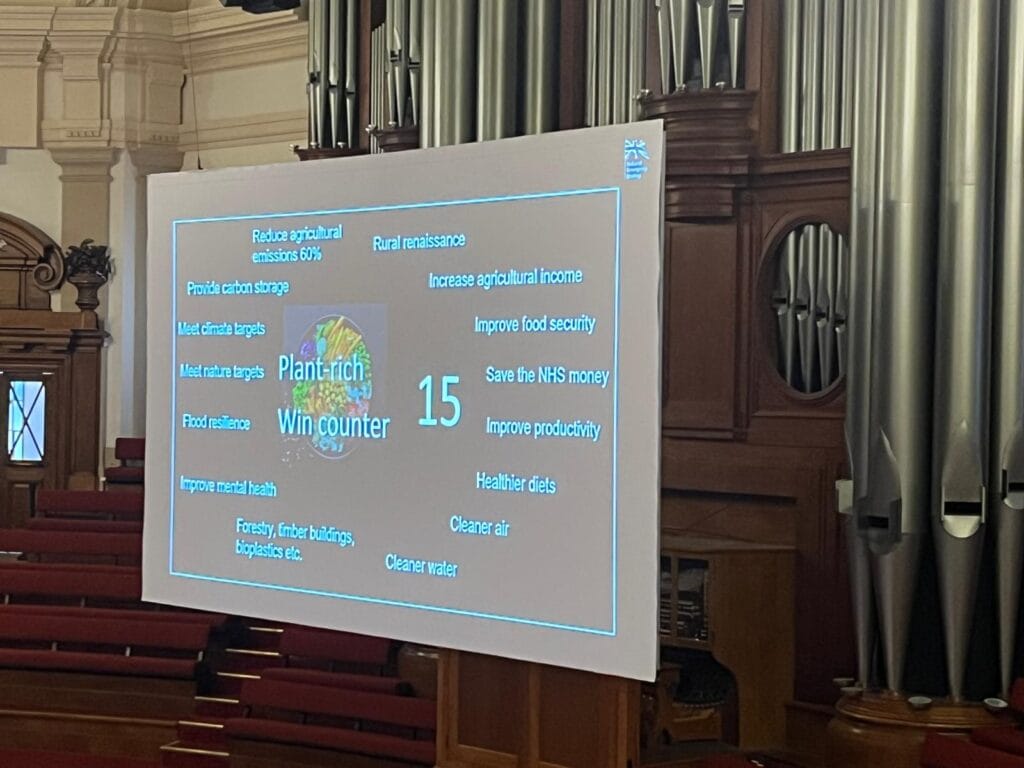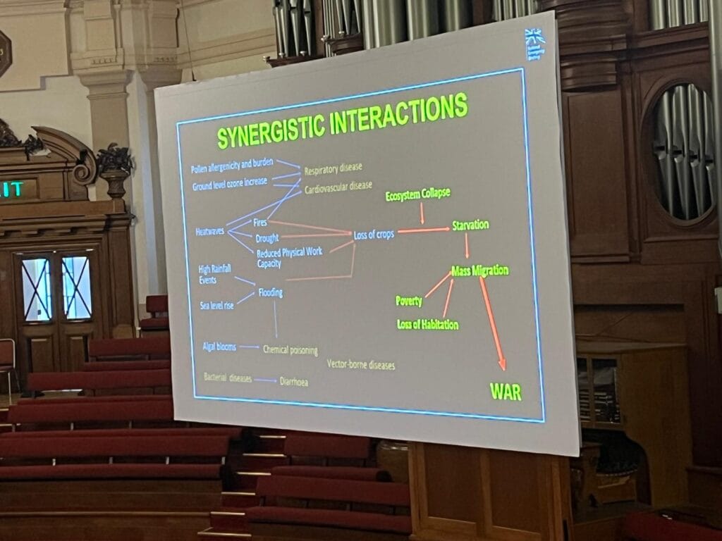 Paul Behrens spoke on food security. 80% of UK farmers are already seeing problems from climate change and ⅓ of food price inflation is due to climate. He also critiqued our agriculture, saying: