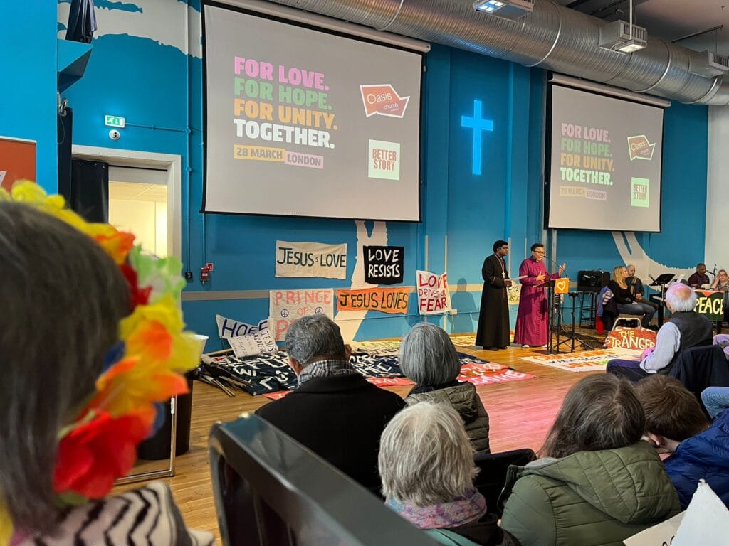 The energetic and joyful service at Oasis Church, Waterloo, was so full that people had to be turned away to keep within fire regulations.