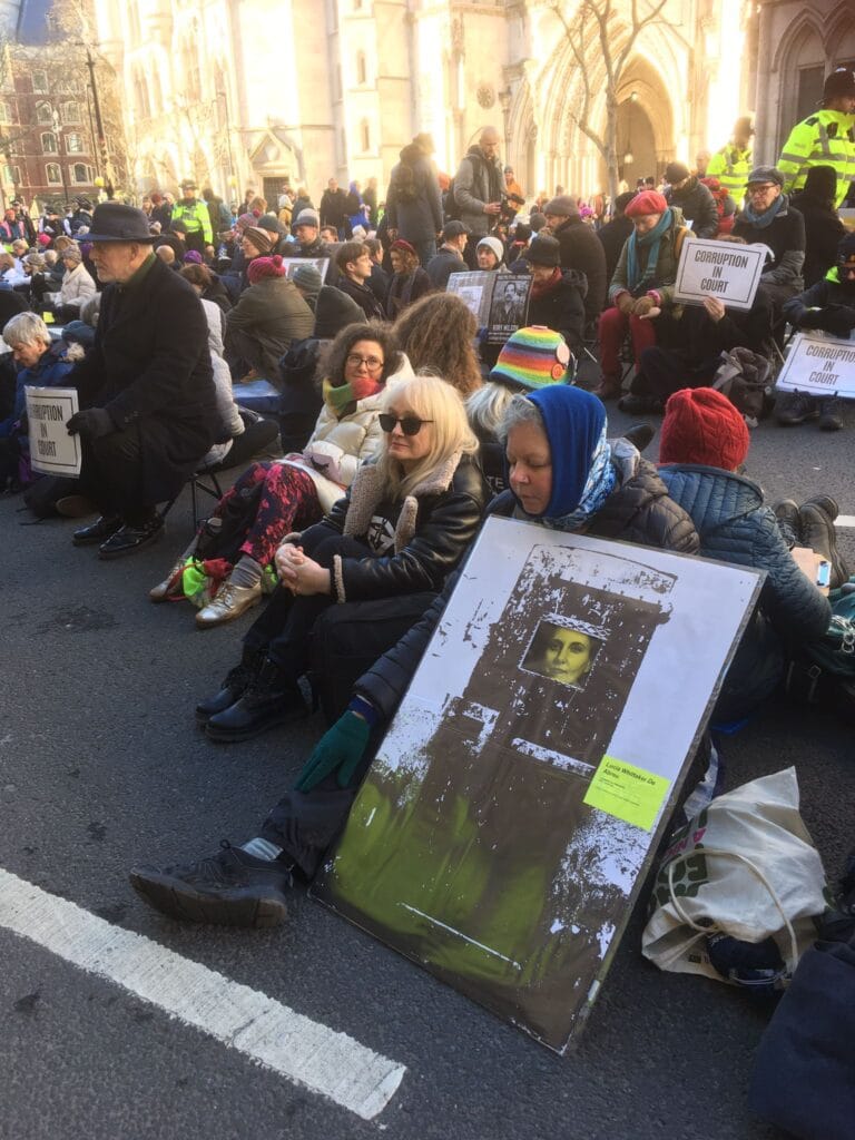 On 30 January over a thousand people sat in the road outside the Royal Courts of Justice to protest at the deliberate diminution of the right to protest in the UK. Inside the Courts an appeal was being heard brought by 16 climate protesters challenging the severity of the sentences they had been given.